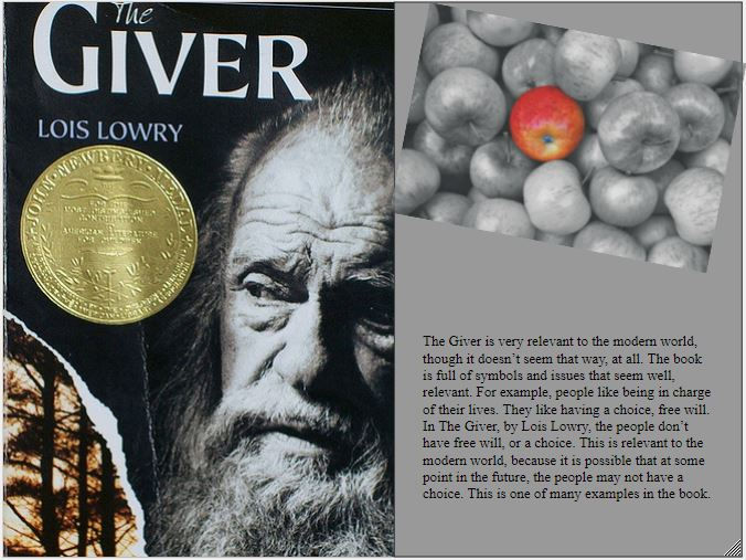 For a class assignment, I had to analyze a story and talk about the cultural relevance.The picture to the right is what I did for the assignment. Cultural relevance is how a story relates to the world. In my example, I talk about free will. As I said, this is only one example in the book.